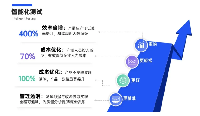 效率倍增:产品生产测试效率提升400%,测试周期大幅缩短;